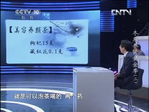 美容養(yǎng)顏茶 【美容養(yǎng)顏茶】藏紅花0.1克、枸杞15克。 這期節(jié)目的視頻:http://tv.cntv.cn/video/C10606/VIDE100143462131 |