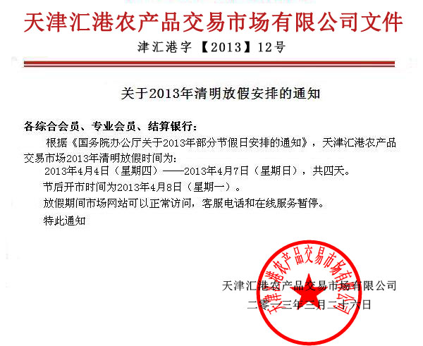 關(guān)于2013年清明放假安排的通知
