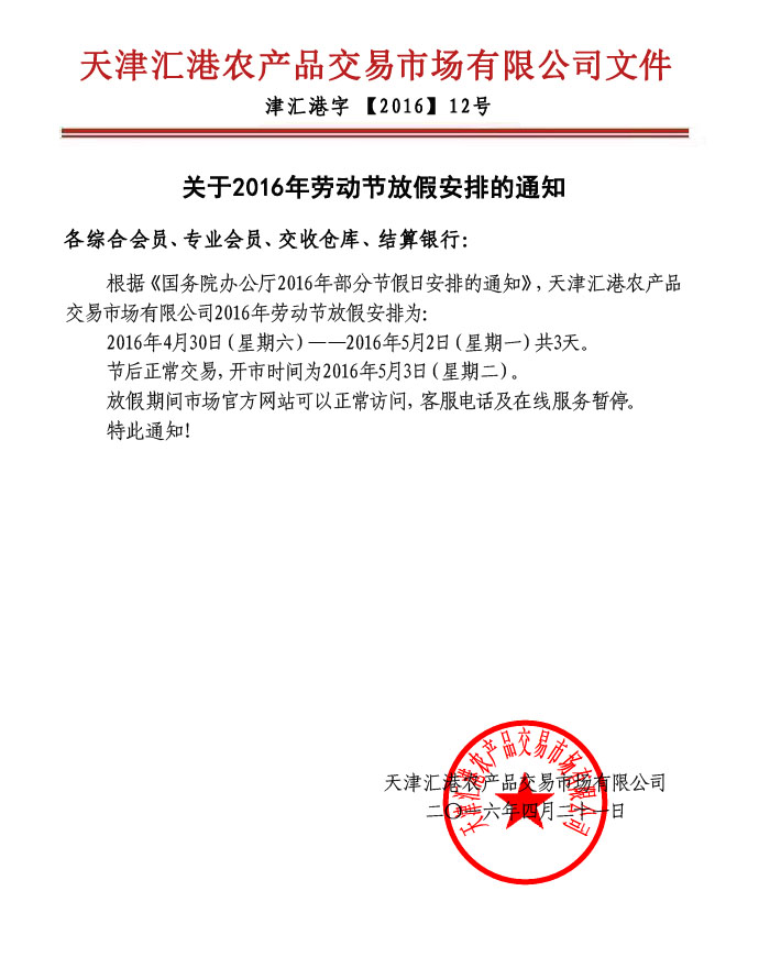 關(guān)于2016年勞動(dòng)節(jié)放假安排的通知