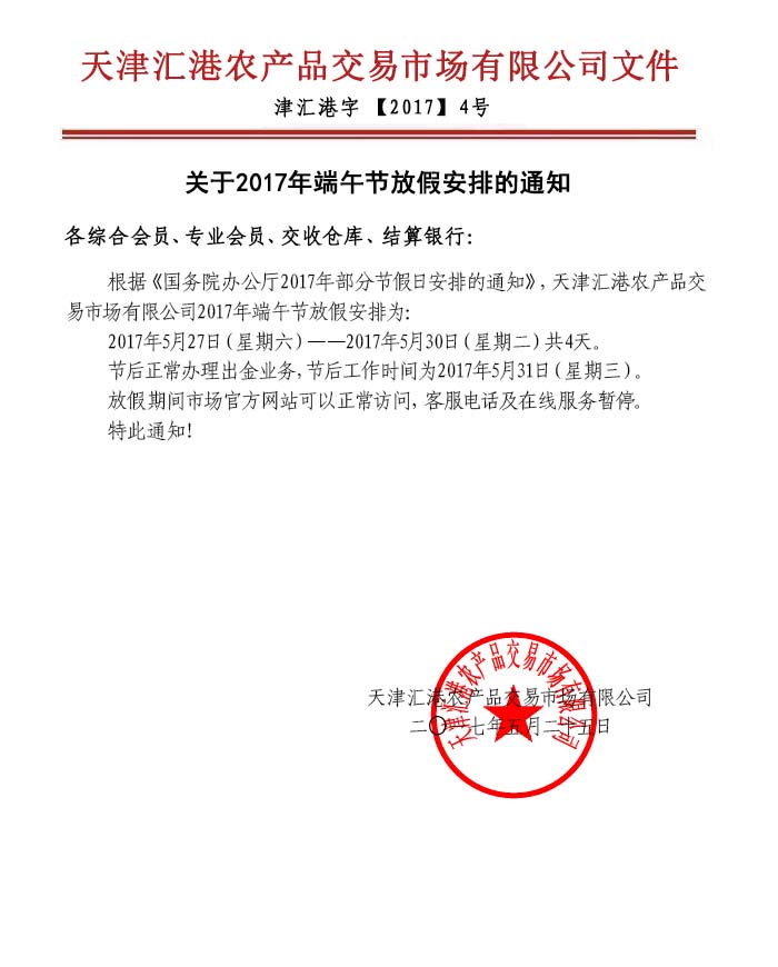 關(guān)于2017年端午節(jié)放假安排的通知