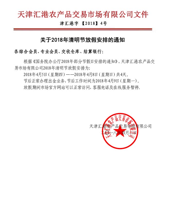 關(guān)于2018年清明節(jié)放假安排的通知