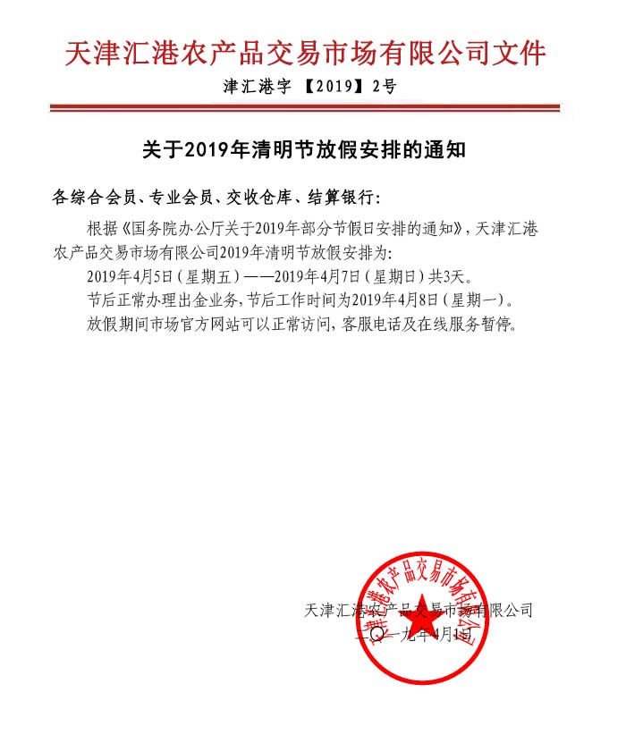 關(guān)于2019年清明節(jié)放假安排的通知