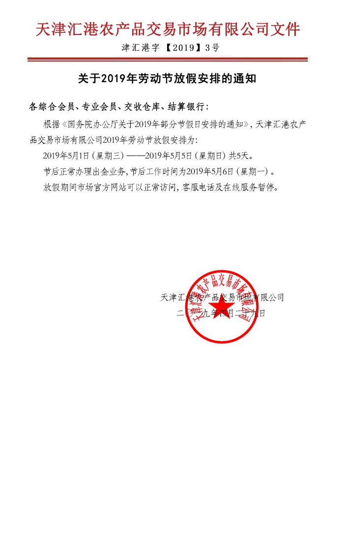 關(guān)于2019年勞動(dòng)節(jié)放假安排的通知