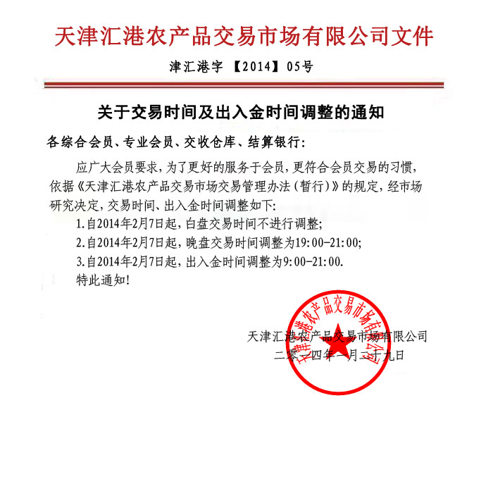 關(guān)于交易時(shí)間及出入金時(shí)間調(diào)整的通知