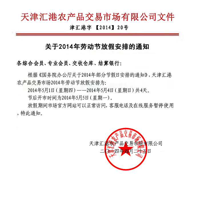 關于2014年勞動節(jié)放假的通知