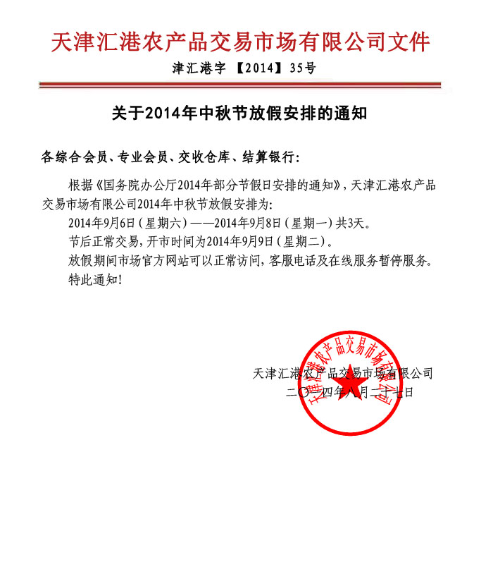 關(guān)于2014年中秋節(jié)放假安排的通知